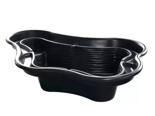 Muotoallas, materiaali polyeteeniä. Tilavuus 350L, pinta-ala 1,47m2. Syvyys max 50cm, leveys ja pituus 130*165cm. Reunat porrastettu.