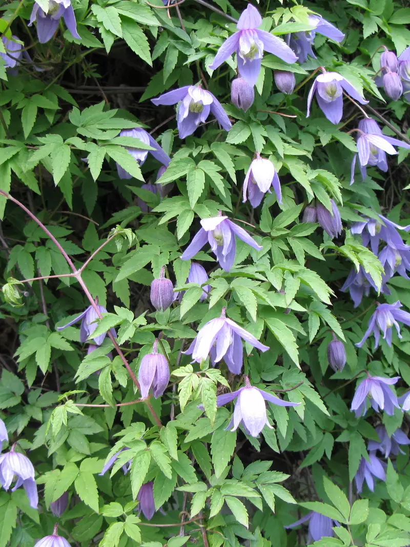 Alppikärhö Clematis alpina I-V(VI) kork. 3-4 m/ lev. 1 m A-Pv Kellomaisesti nuokkuvat, sinivioletit kukat kesäkuussa. Kauniit karvaiset siemenpähkylät loppukesällä ja syksyllä.... Lue lisää