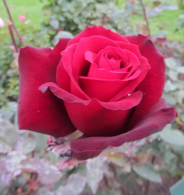 Suurikukkainen. Kukat ovat mustanpunaiset, kerrotut, 8-11 cm leveät, voimakkaasti tuoksuvat. Kasvutapa on pysty ja tuuhea, hyvä leikkokukka. Talvisuojaksi tyvelle kasataan reilusti hiekkapitoista multaa tai talvisuojaturvetta myöhään syksyllä. Suositeltava istutustiheys on 6-7 kpl/m2.