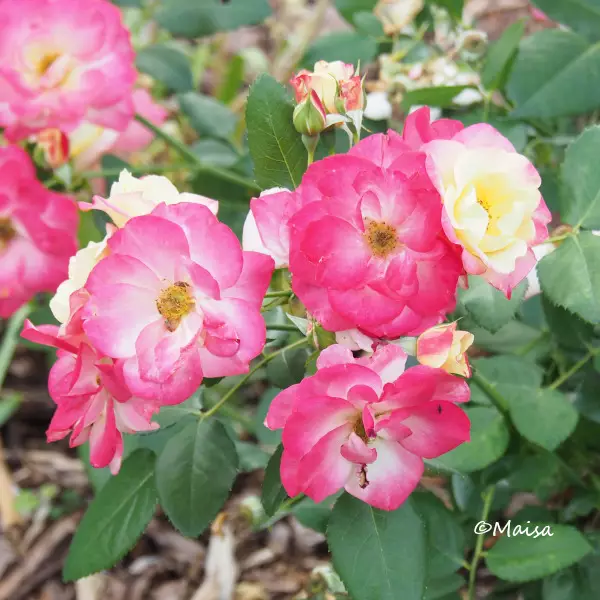 Kukat avautuvat keltaisina pinkin värisin reunoin, punaisuus leviää vähitellen koko kukkaan. Puolikerrottu, terve lajike, versot vähäpiikkiset. Kukkii heinäkuusta syksyyn. Viihtyy ravinteikkaassa, kalkitussa, kosteutta pidättävässä kasvualustassa.