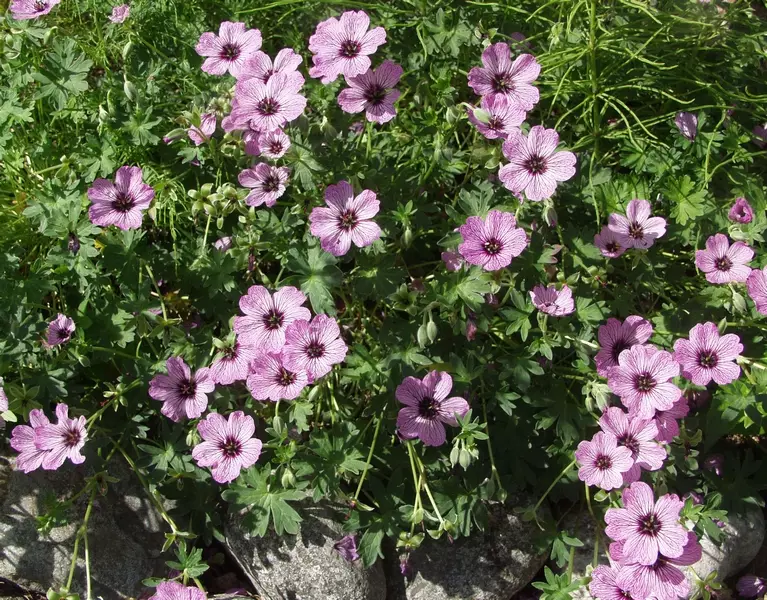 Harmaakurjenpolvi (kivikkokurjenpolvi) Geranium cinereum ’Ballerina’ A-Pv kork. 10-20 cm VII-VIII Vaaleanpunaliila pitkä kukinta heinä-elokuussa. Kukinta saattaa uusiutua syksyllä.... Lue lisää