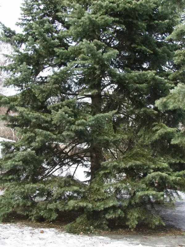 Pitkät vaaleansinertävät neulaset. Latvus on lähes vaakasuoraan kasvavien oksien ansiosta leveä. Viihtyy tuoreessa, runsasravinteikkaassa multavassa maassa.