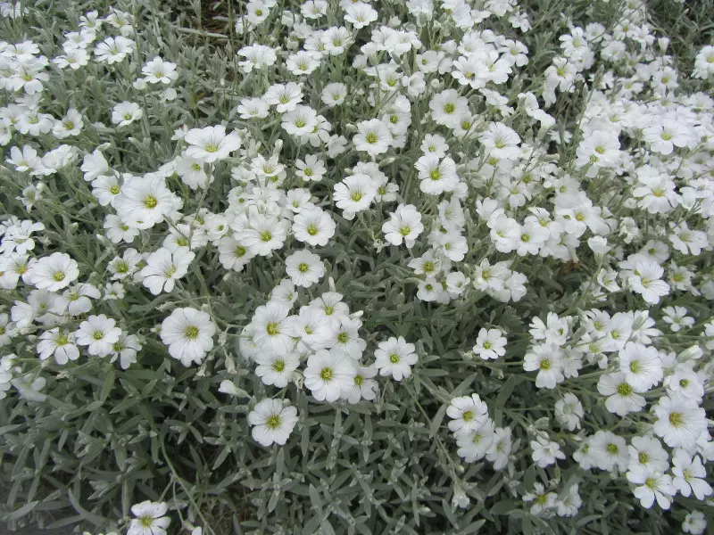 Hopeahärkki Cerastium tomentosum A kork. 10-20 cm VI-VII Runsas valkoinen kukinta alkukesällä. Hopeanharmaat, karvaiset lehdet. Leviää nopeasti. Viihtyy kuivassa niukkaravinteisessa... Lue lisää
