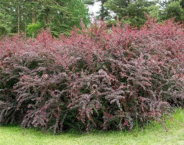 Lehdet ovat tumman violetinpunaiset, syysväriltään punaiset. Roteva kasvutapa. Keltaiset kukat kesäkuussa. Tummanpunaiset syömäkelvottomat marjat koristavat oksia talvella. Sopii ryhmiin, vapaasti kasvaviin aidanteisiin ja kuiviin rinteisiin. Viihtyy kuivahkossa, hiekkapitoisessa ja keskiravinteisessa maassa. Taimiväli on 0,8-1 m.