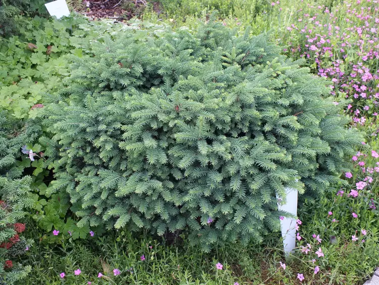 Tiheä leveän pallomainen kasvutapa. Sinertävänvihreät neulaset. Viihtyy tuoreessa, keskiravinteisessa, ilmavassa maassa.