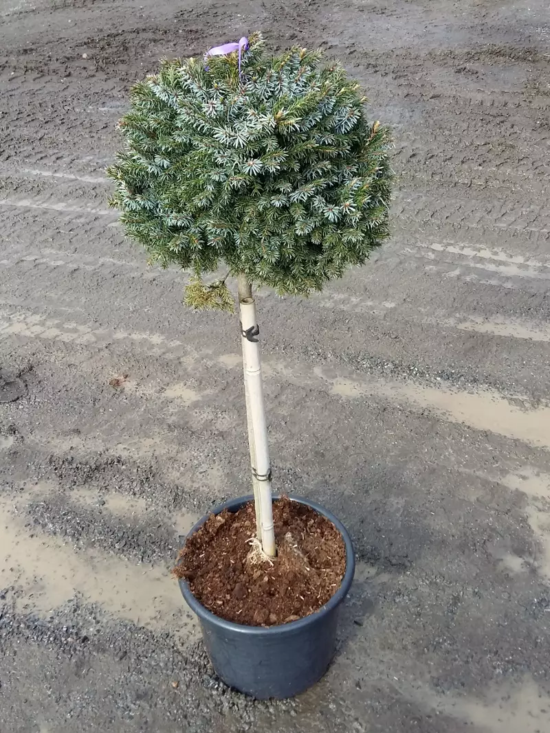Tiheä latvus. Hidaskasvuinen. Neulaset ovat lyhyet ja alta hopeanhohtoiset. Viihtyy tuoreessa, keskiravinteisessa, ilmavassa maassa. Leikataan, jotta latvuksen pallomainen muoto säilyy.
