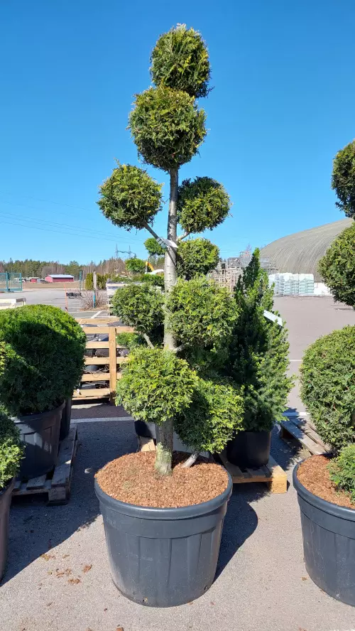 Kartiotuija monipallo Thuja occidentalis ’Brabant’ I-IV (A)Pv-V Näyttävä erikoisuus, katseenvangitsija. Vaatii säännöllisen leikkauksen säilyttääkseen muotonsa. Kasvualusta tuore... Lue lisää