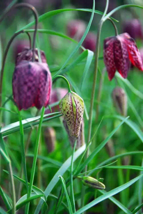 kirjopikarililja punavioletteja ja valkoisia kukkia kukinta-aika touko-kesäkuussa korkeus 25-30 cm