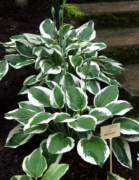 Vihreät vaaleareunaiset lehdet, liilat kukat. Runsas ja täyteläinen kasvutapa. Lajike Patriot on Minutemanin näköinen, mutta kookkaampi. Suositus istutusväliksi 6 kpl/m2.