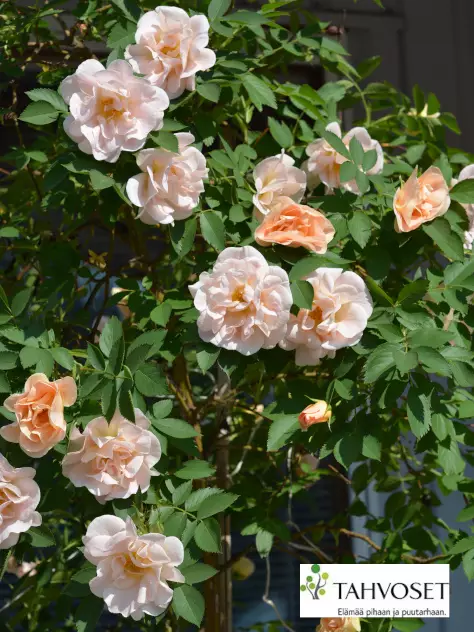 Erityisen kestävä köynnösruusu. Suuret kukat ovat aprikoosinsävyiset ja puolikerrotut/ kerrotut. Kukkii runsaasti keskikesällä, satunnaisia kukkia avautuu loppukesälle saakka. Terve lajike. Kasvualusta kalkittu, runsasmultainen.