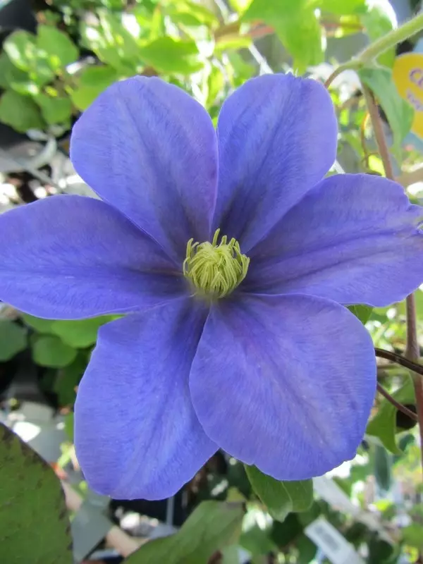 Kukat ovat taivaansiniset, halkaisijaltaan 10-16 cm. Kiertyy itse tukeen lehtiruodeillaan. Viihtyy tuoreessa, runsasravinteisessa ja kalkitussa multamaassa. Ei siedä seisovaa vettä eikä etenkään talvimärkyyttä. Tyven ympärille voi laittaa hiekkaa. Juuristo suojataan kesän paahteelta istuttamalla juurelle esim. maanpeittoperennoja. Taimet istutetaan noin 20 cm syvempään.