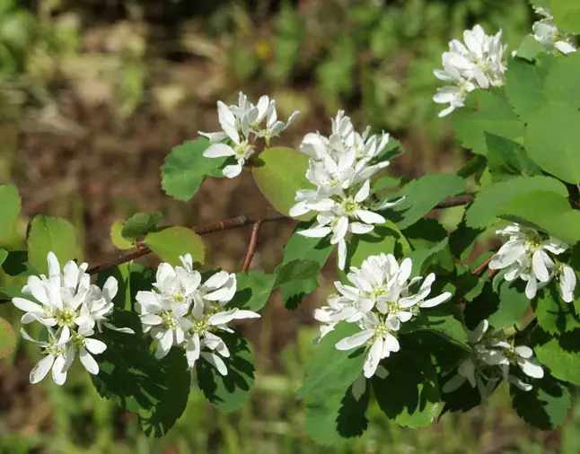 Toiselta nimeltään Saskatoon. Muistuttaa kasvutavaltaan isotuomipihlajaa eli on melko pystykasvuinen, tekee juurivesoja. Kukkii toukokuussa valkoisin, pieniä tuomenkukkia muistuttavin kukin. Vaatimaton kasvualustan suhteen. Suosii läpäisevää hiekkamultamaata, ravinteiden tarve on keskinkertainen. Sopii pensasryhmiin, suojapensaaksi, aidanteisiin, leikattuihin aitoihin ja hyötykasviksi. Loppukesällä kypsyvät maukkaat, makeat, mustikannäköiset marjat. Pensaan kokoa voi poiminnan helpottamiseksi rajoittaa leikkaamalla.