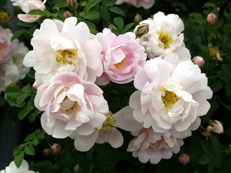 Kukkii kesäkuun lopulla hennon vaaleanpunaisin kerrannaisin kukin, jotka kehittyvät edellisen vuoden versoihin. Kukat tuoksuvat, mutta eivät yhtä voimakkaasti kuin juhannusruusulla. Tekee paljon juurivesoja. Naurismaisia tumman purppuran - ruskeanpunaisia kiulukoita kehittyy runsaasti. Viihtyy parhaiten syvämultaisessa, ravinteikkaassa, kalkitussa maassa. FinE-lajike. Taimiväli 0,8-1 m.