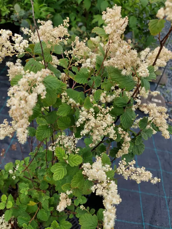 Nukka-angervo Holodiscus discolor I-III kork. 1,5-2 m/ lev. 1,5-2 m A-Pv Kaarevahaarainen pensas. Kukkii keskikesällä jopa 25 cm:n pituisin kermanvalkoisin, makeantuoksuisin röyhykukinnoin. Kaunis... Lue lisää