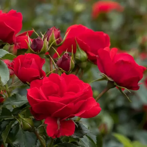 Tummanpunaiset, kerrotut, halk. 6-8 cm, mietotuoksuiset kukat. Terttukukkainen ryhmäruusu, terve lajike, kompakti kasvutapa. Talvisuojaus on eduksi. Suositeltava taimiväli on 5-6 kpl/m2.