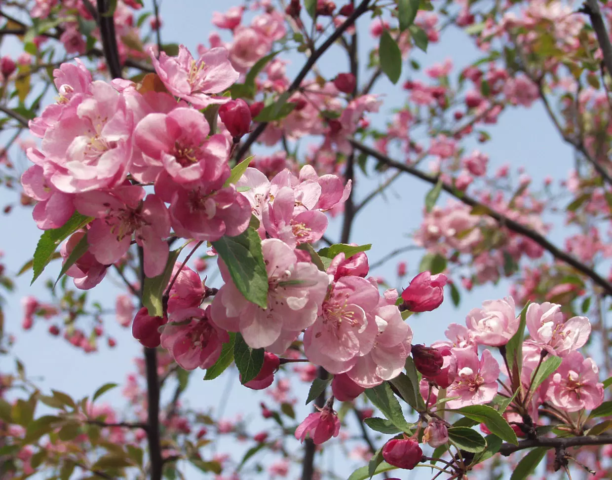 Muistuttaa kukkiessaan japanilaisia kirsikoita. Kukat puolikerrannaiset vaaleanpunaiset. Vähän hedelmiä. Nuoret lehdet punertavat. Puu on iso, mutta sirolatvainen. Taimet istutetaan 4-5 m välein.