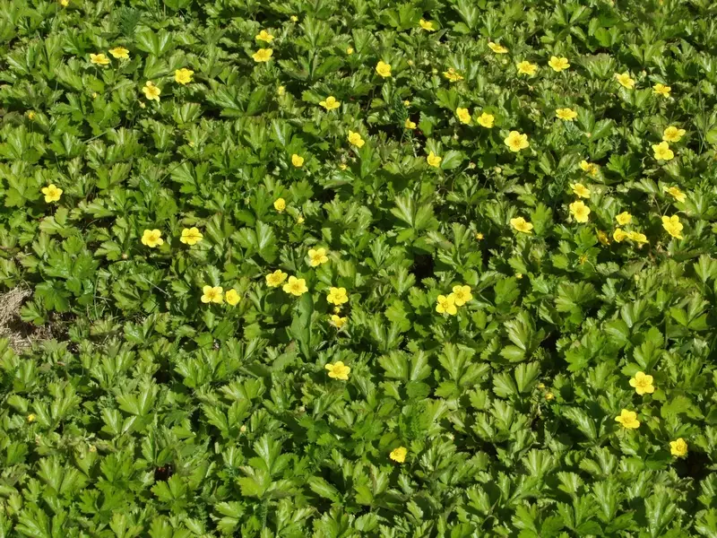 Kolmisormiset, kiiltävät, ikivihreät lehdet. Keltaiset kukat. Leviää maanpäällisten rönsyjen avulla. Viihtyy kuivahkossa tai tuoreessa, keskiravinteisessa maassa. Erinomainen maanpeittokasvi. 8-10 kpl/m2.
