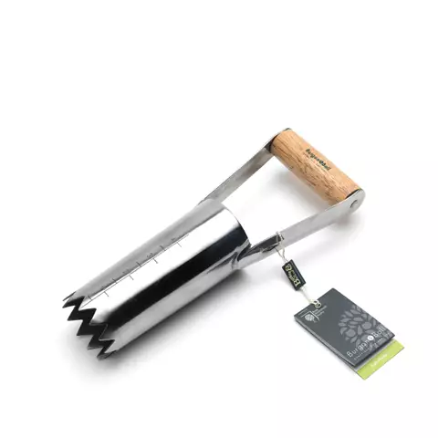 Työkalu helpottamaan kukkasipulien istuttamista.
