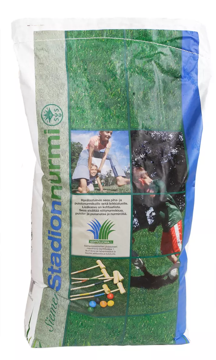 Seos sisältää; Puistonata 35%, Punanata 27% ja Nurmirölli 3%. Hyvälaatuinen seos piha -ja puistonurmikoille sekä leikkikentille. Kestää kulutusta ja talvehtii hyvin. Kylvösuositus 2,5-3kg/100m2.