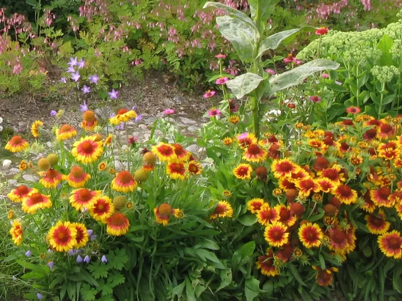 Säkenöivän väriset, keltapunakirjavat kukat. Viihtyy kohtuudella lannoitetussa, multavassa, hyvin vettä läpäisevässä, hiekkapitoisessa kasvualustassa. Katseenvangitsija perennaryhmiin ja kivikoihin. 12 kpl/ m2.