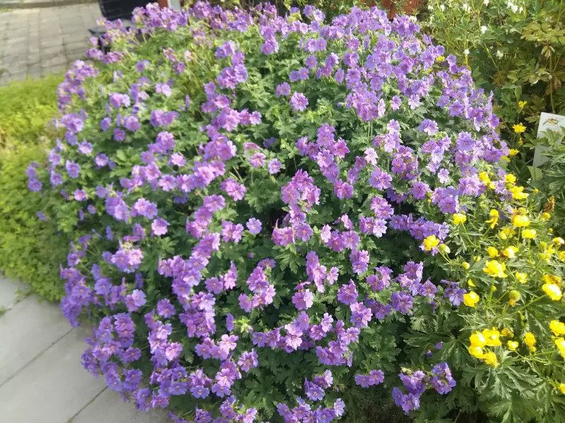 Tarhakurjenpolvi Geranium x magnificum A-Pv kork. 40-70 cm VI-VII Kukkii pitkään keskikesällä. Violetit kukat. Leviää hitaasti juurakkonsa avulla ja peittää hyvin. Viihtyy tuoreessa... Lue lisää