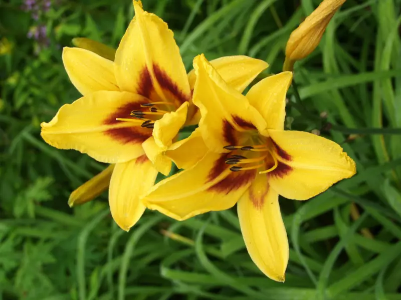 Kukat suuret, keltaiset, terälehtien tyvissä punaruskeat kuviot. Tuuhean lehdistönsä ansiosta kasvi on näyttävä muulloinkin kuin kukinta-aikaan. Helppohoitoinen ryhmäperenna. Kasvualusta kosteutta pidättävä, ravinteikas, multava. Taimiväli 40 cm eli noin 6 kpl/m2.