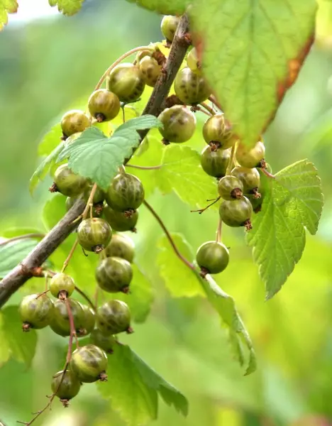 Vihreät makeat marjat, kasvutapa muistuttaa mustaherukkaa. FinE-lajike.